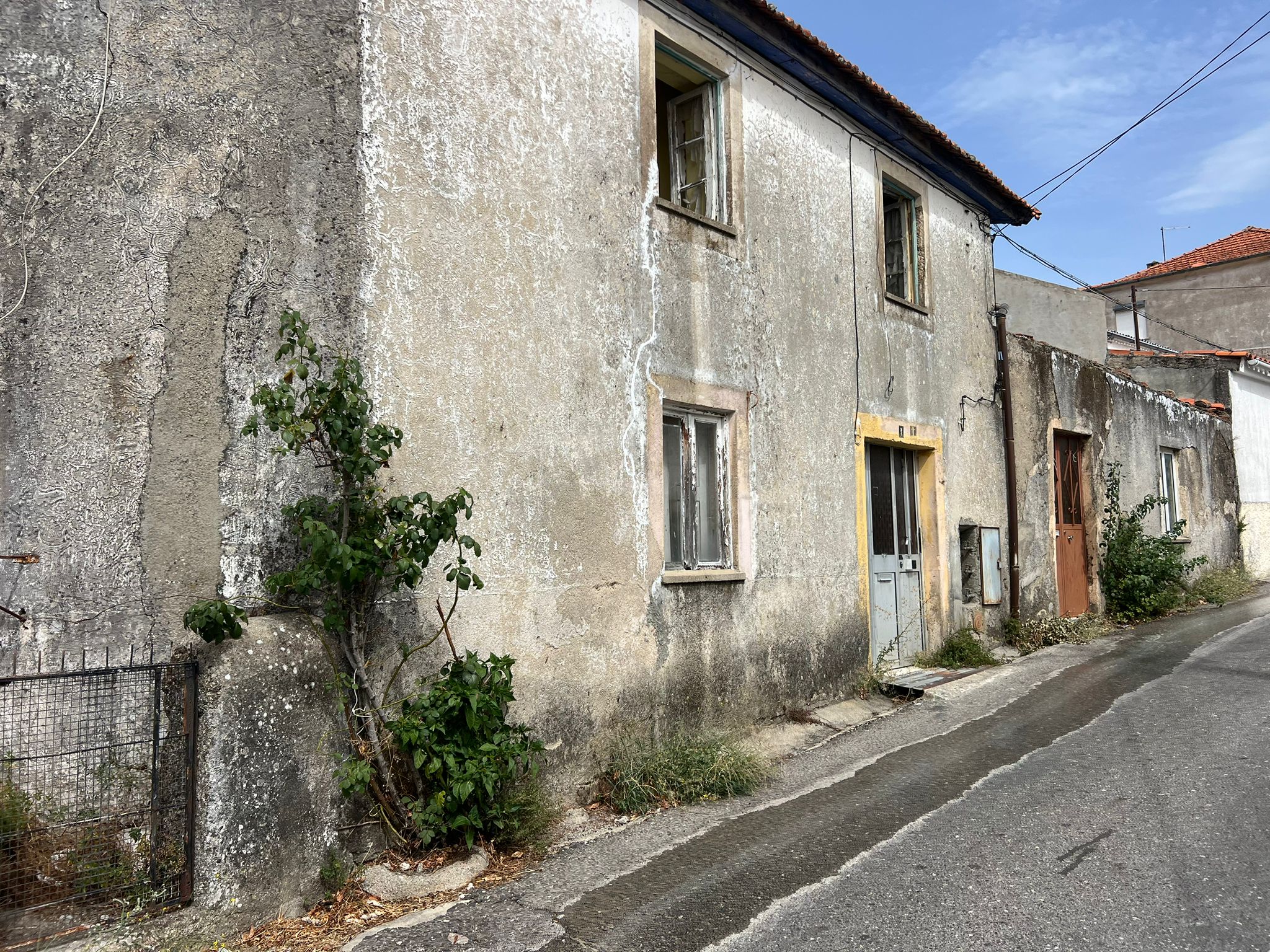 Casa de pedra, de construção moderna, tipo pobre, em mau estado de conservação compondo-se de: r/ch - um portado e tem à direita uma habitação com três divisões e duas janelas; 1º andar - com entrada pelo logradouro e balcão - à esquerda do corredor tem quatro divisões, à direita três divisões e em frente três divisões. Reduto - uma habitação com três divisões e cozinha em separado, a do lado nascente do caminho dos Lameirões - uma habitação com quatro divisões; dependência - tem um portado com duas divisões; dependência nascente - tem três divisões e uma no sobrado, logradouro.